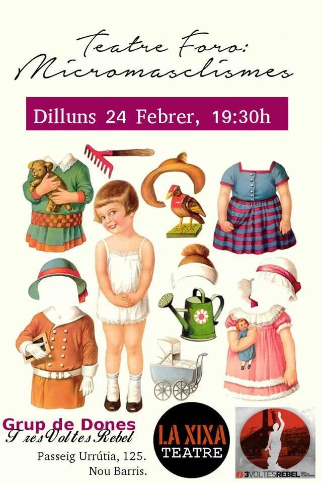 El proper dilluns 24 de febrer, a les 19.30h La Xixa Teatre + Grup de dones Tres voltes Rebel, presenten: Teatre Foro: micromasclimes.